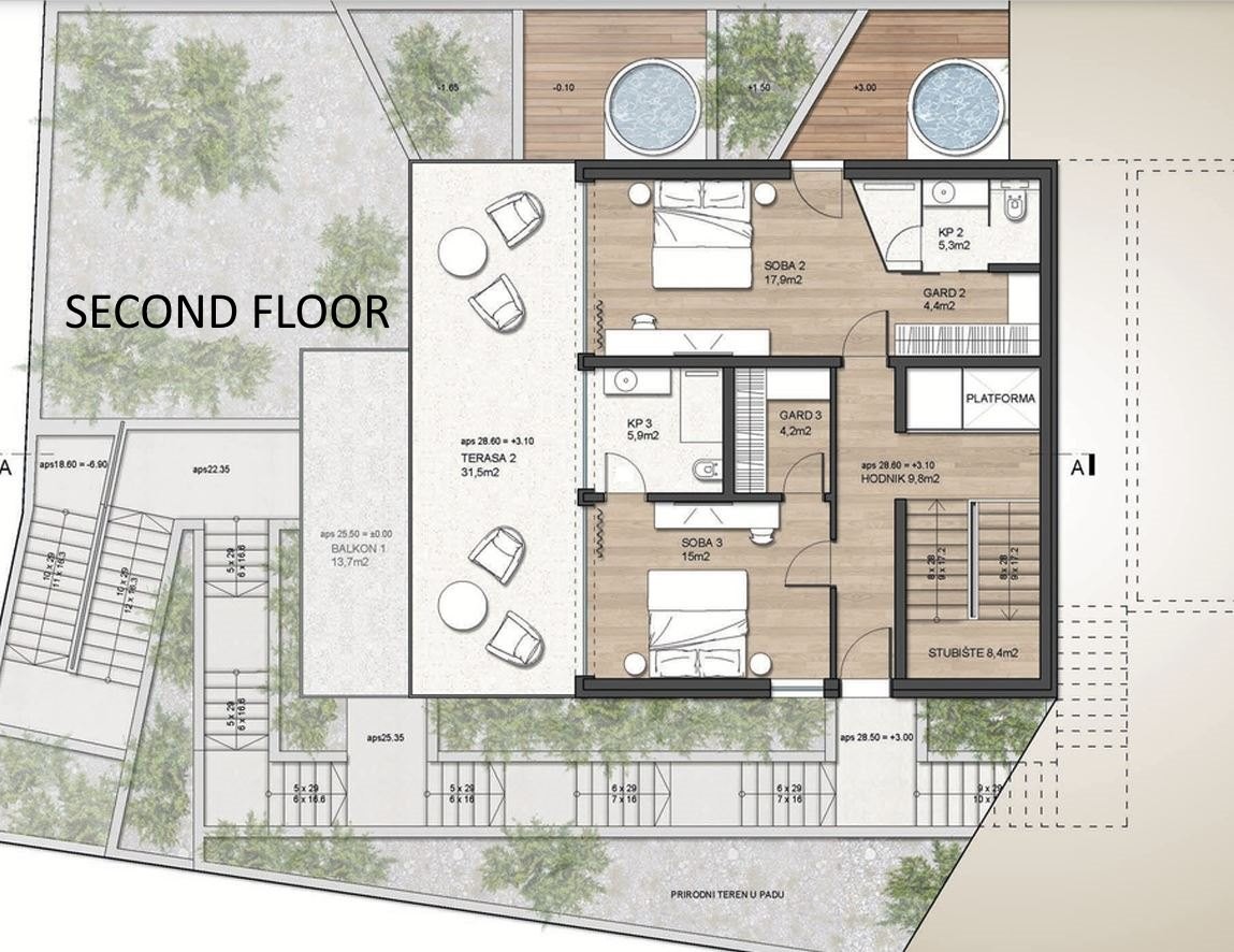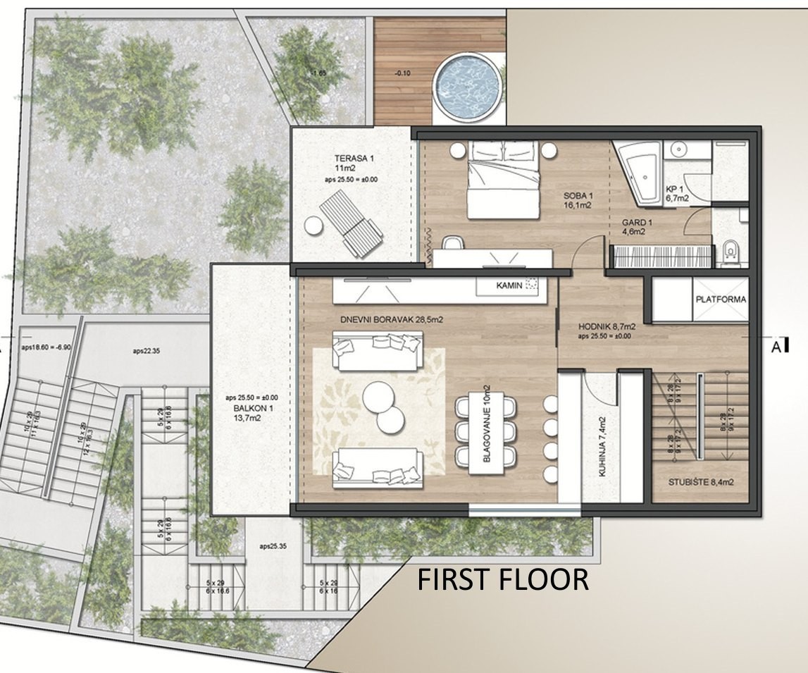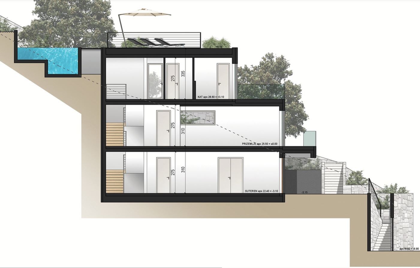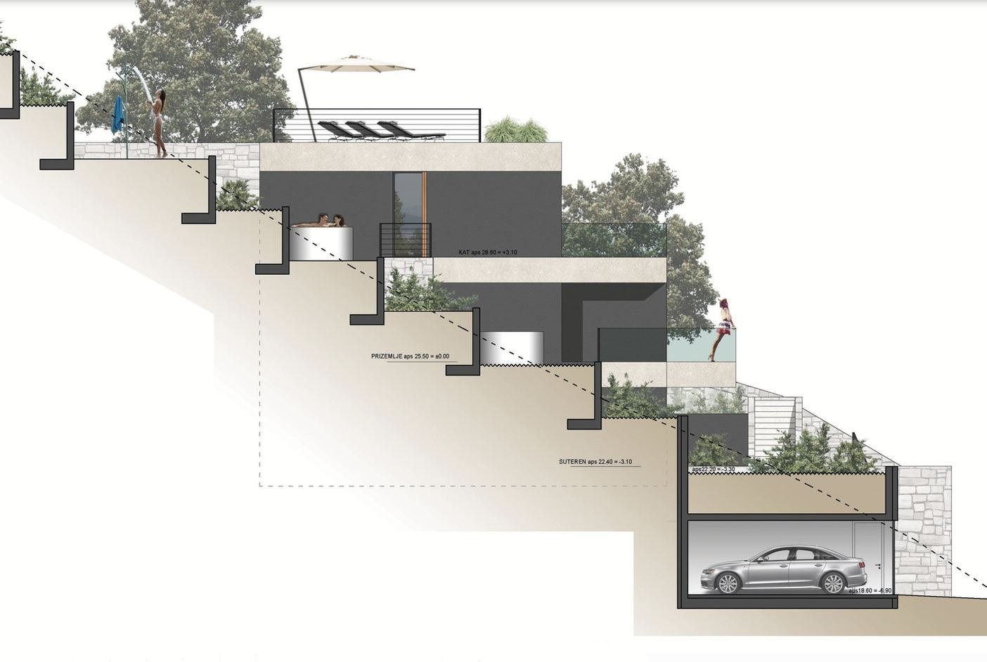 Villa ima 310m2 bruto površine, garaža, bazen, terase...